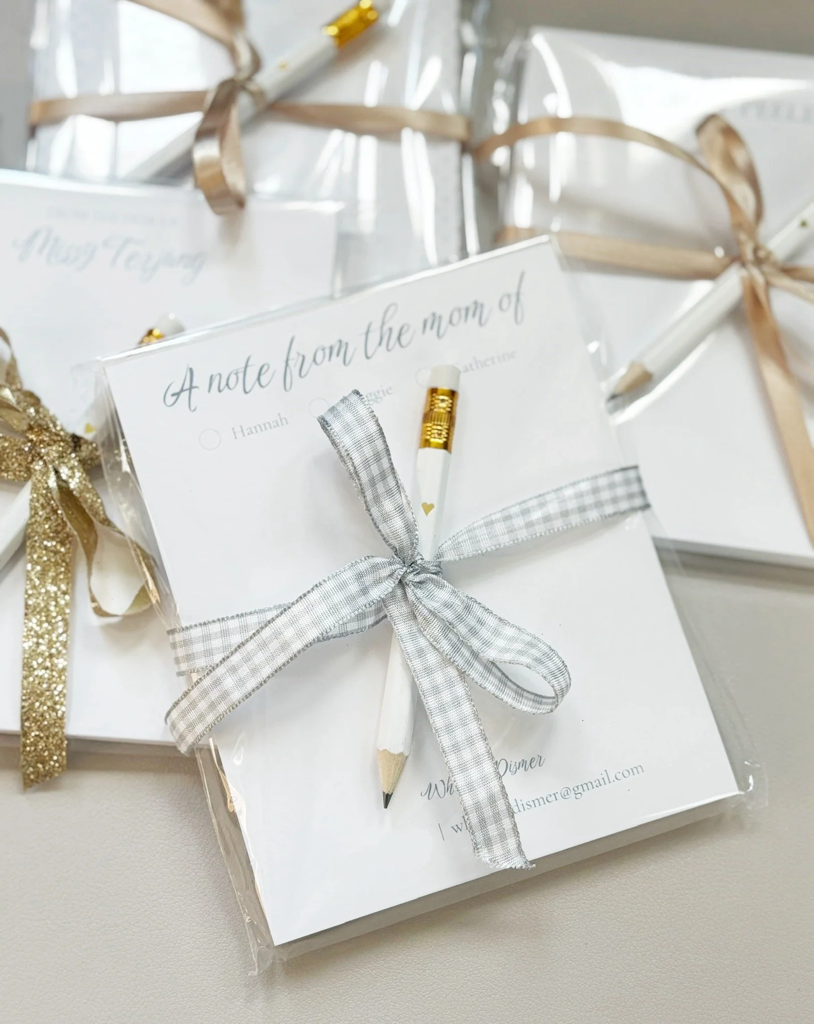 Notepads Personalized Christmas Wreath Notepad – 4.25 x 5.25 - Memo Pad, Tear-Off Sheets - To-Do List Pad from $25.00 Select Notepad size 50 75 Add To Cart Added! Mahjong Notepad - 4.25 x 5.25 - Tear-Off Sheets - Gift, Desk Stationery from $15.00 View Options Personalized Layne Type Monogram Notepad with watercolor background– Tear-Off Sheets – 5.5 x 5.5 - Gift, Desk Stationery from $25.00 View Options Personalized Layne Type Monogram Notepad – Tear-Off Sheets – 5.5 x 5.5 - Gift, Desk Stationery from $25.00 Select Notepad size 50 75 100 200 Add To Cart Added! Personalized Bronco "From the desk of" Notepad – Tear-Off Sheets – 4.25 x 5.25 - Gift, Desk Stationery from $25.00 View Options Fall Mums Notepad | Tear off sheets | Personalized Fall Mum Notepad from $25.00 View Options Personalized "A Note From the Mom of" Notepad – Tear-Off Sheets – 4.25 x 5.25 - Gift, Desk Stationery from $25.00 View Options Personalized "From the desk of" Notepad – Tear-Off Sheets – 4.25 x 5.25 - Gift, Desk Stationery from $25.00 View Options Personalized "From the desk of" Notepad – Tear-Off Sheets – 4.25 x 5.25 - Gift, Desk Stationery from $25.00 View Options Personalized Monogram Notepad –Tear-Off Sheets – 4.25 x 5.25 - To-Do List Pad, Gift for Teachers, Desk Stationery from $25.00 View Options Personalized Teacher Notepad – Teacher Colored Pencil Memo Pad, Tear-Off Sheets – 4.25 x 5.25 - To-Do List Pad, Gift for Teachers, Desk Stationery from $25.00 Select Notepad size 50 75 Add To Cart Added! Personalized Aussie Notepad – Cute Dog Memo Pad, Tear-Off Sheets – 4.25 x 5.25 - To-Do List Pad, Gift for Dog Lovers, Desk Stationery from $25.00 View Options